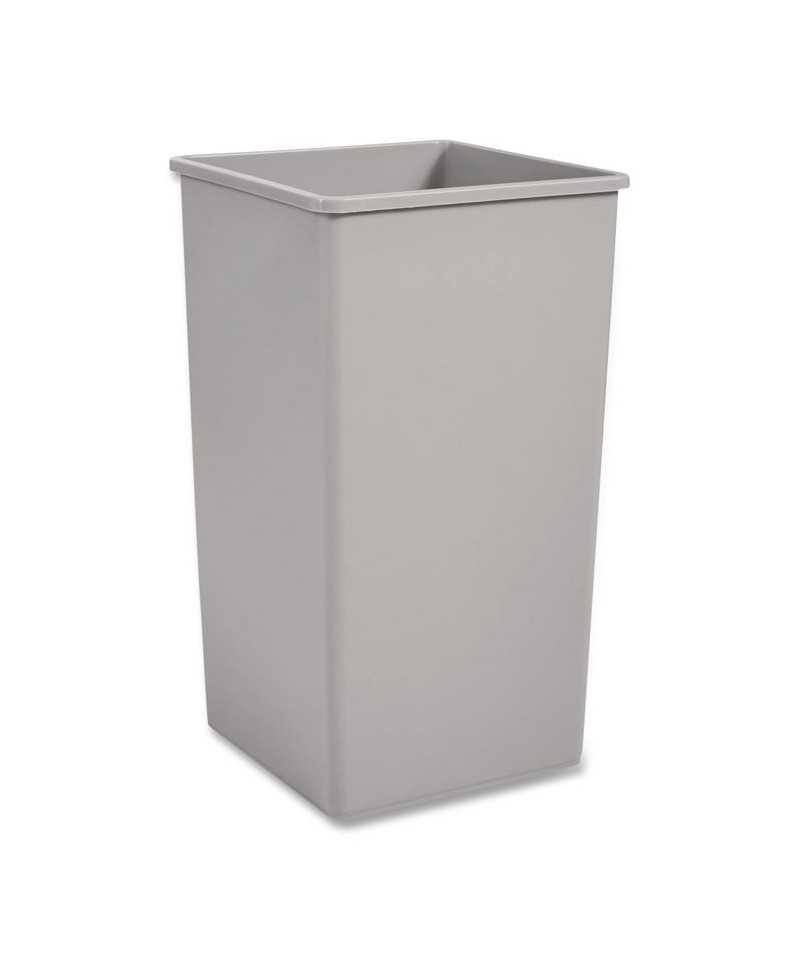 Untouchable® large plastic square waste receptacle features a sleek design for a professional image that's ideal for centrally located collection areas. Patent-pending cinch keeps your can-liner in place, eliminating the need to resize the opening by tying a knot. Durable, crack-resistant shell holds up, even under tough indoor/outdoor conditions. Compatible with variety of swing-top lids -- sold separately.