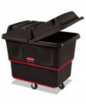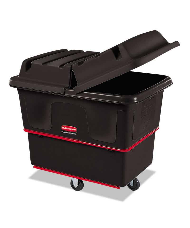 The utility cart is designed to transport laundry, waste, and other materials. It is constructed of polyethylene to be durable and lightweight. Featuring a metal frame and four casters for push-pull maneuverability, this Rubbermaid cart has smooth surfaces for easy cleaning.