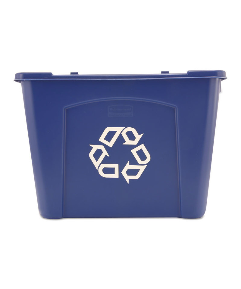 The Rubbermaid Recycling Bin is made from linear low density polyethylene to withstand harsh weather conditions and prevent cracking, denting, or bowing. This recycle bin is stackable for convenient use of multiple containers at one time and nestable for easy storage. This recycling bin is imprinted with the universal recycling logo for increased waste management compliance.
