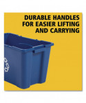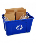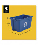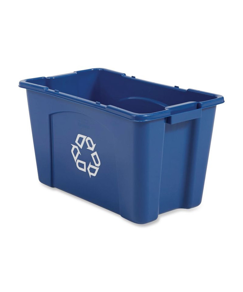 The Rubbermaid Recycling Bin is made from linear low density polyethylene to withstand harsh weather conditions and prevent cracking, denting, or bowing. This recycle bin is stackable for convenient use of multiple containers at one time and nestable for easy storage. This recycling bin is imprinted with the universal recycling logo for increased waste management compliance.