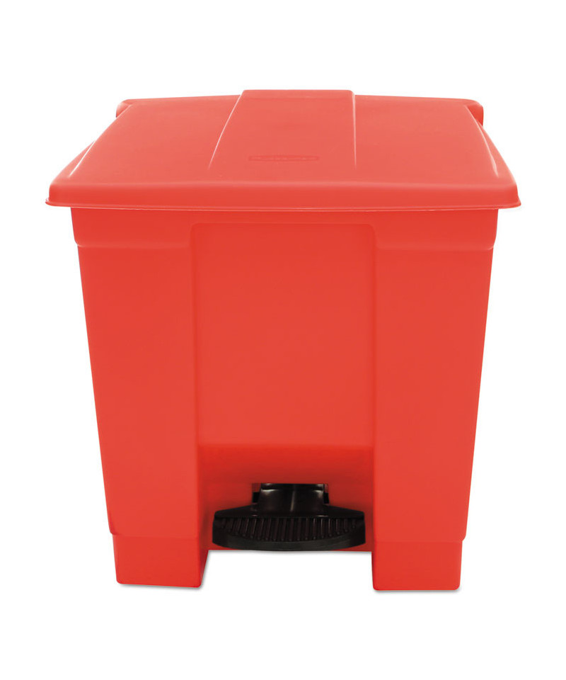 Indoor Utility Step-On Waste Container, 8 gal, Plastic, Red
