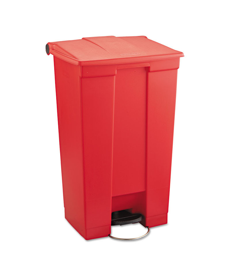 Indoor Utility Step-On Waste Container, 23 gal, Plastic, Red