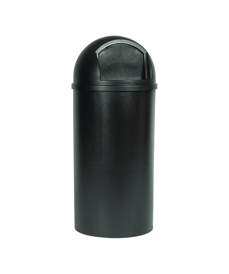 This Marshal has arrived to help clean up the town. Practical good looks combine with fire safety in this durable plastic container. Push door conceals waste. Textured finish helps minimize appearance of surface scratches. Includes retainer hardware for securing and concealing can liners. For indoor use.