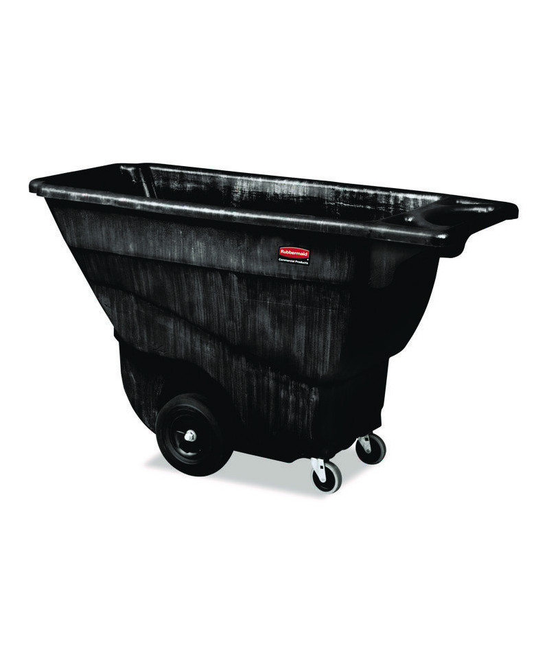 The Rubbermaid Commercial Tilt Truck offers industrial strength construction that transports heavy loads with ease. These tilt trucks feature seamless one-piece molded truck bodies with a reinforced lip. The sturdy, plastic construction won't rust, dent, chip, or peel and is easy to clean. 4-inch center swivel back caster provides easy maneuvering. 10-inch blow-molded polypropylene inset wheels protect surroundings. The dump trailer has a powder-coated steel frame for corrosion resistance. This tilt truck is easy to handle and maneuver through commercial doorways and onto elevators. The constant force design allows for controlled dumping by one person. Inset wheels protect walls, fixtures and patrons. The smooth surface is easy to clean and resists pitting and corroding. Optional domed li