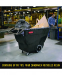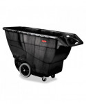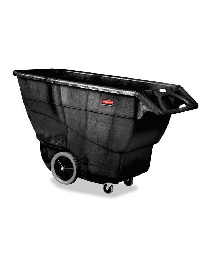 The Rubbermaid Commercial Tilt Truck offers industrial strength construction that transports heavy loads with ease. These tilt trucks feature seamless one-piece molded truck bodies with a reinforced lip. The sturdy, plastic construction won't rust, dent, chip, or peel and is easy to clean. 4-inch center swivel back caster provides easy maneuvering. 10-inch blow-molded polypropylene inset wheels protect surroundings. The dump trailer has a powder-coated steel frame for corrosion resistance. This tilt truck is easy to handle and maneuver through commercial doorways and onto elevators. The constant force design allows for controlled dumping by one person. Inset wheels protect walls, fixtures and patrons. The smooth surface is easy to clean and resists pitting and corroding. Optional domed li