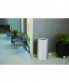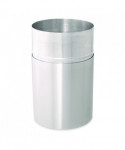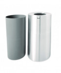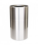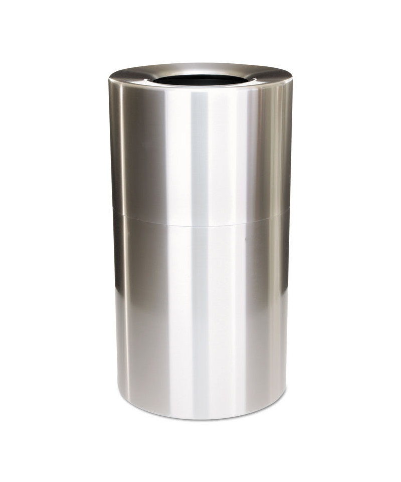 This container is open for business. A 9" dia. opening provides plenty of area through which trash can be dropped. Fire-safe, satin aluminum with durable baked-on polyester finish withstands hard use. Lift-off top holds and conceals poly bag. Corrosion-resistant.