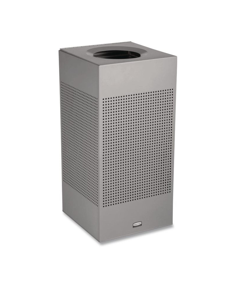 Trash can offers functional litter control in an elegant design. Open top with a vinyl trimmed disposal opening. Made of fire-safe steel. Its wall-hugging design is ideal for areas where looks are important and space is limited.