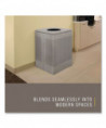 Offers functional litter control in an elegant design. The garbage can has an open top with a vinyl trimmed disposal opening. The trash can is made of fire-safe steel. Its wall-hugging design is ideal for areas where looks are important and space is limited. The lift-off trash can body makes it easier to empty and has a rigid plastic liner that will not leak.
