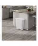 Step-on, hands-free receptacle features a unique shape that makes it easy to place in corners, helping save valuable space. Finish helps to protect...
