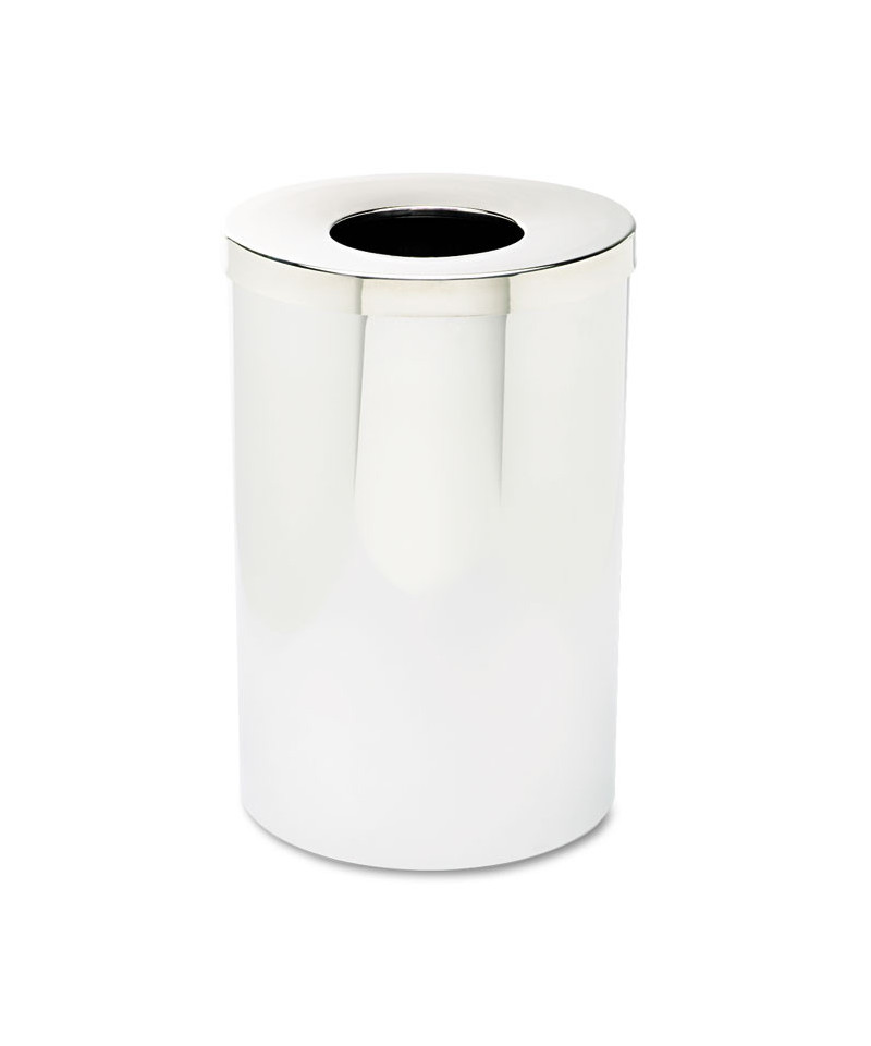 The Reflections by Safco Open Top Receptacle is a sleek and durable 35-gallon trash can, crafted from puncture-resistant steel to withstand daily use in high-traffic areas. Featuring a rolled rim and double lock seams, this receptacle ensures long-lasting durability and stability. The chrome finish adds a modern touch, making it an ideal choice for enhancing the look of your indoor spaces, from offices to lobbies. The open top design, with an 8.5" wide opening, allows for easy, hands-free waste disposal, while the hoop ring on the lift-off lid ensures a secure fit. Perfect for maintaining a clean, organized environment, this receptacle combines functionality with a sophisticated design that complements any commercial or institutional setting.