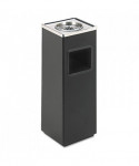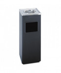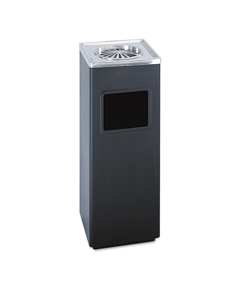 The Square Ash and Trash Receptacle is a versatile outdoor solution for both waste and cigarette disposal. Crafted from durable black steel with sleek chrome accents, this receptacle offers both style and functionality. The stainless steel sandless urn features a slotted snuffer, allowing for easy disposal of cigarettes without the need for sand maintenance or replacement. Designed for outdoor use, it includes a galvanized liner for added durability. Perfect for high-traffic areas such as parks, entrances or patios, this ash and trash receptacle keeps your space clean and organized while offering a sophisticated, low-maintenance solution for waste management.