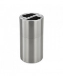 Maintain a clean environment with this sleek two-bin recycling system, designed to help keep recyclables neatly sorted and organized. Ideal for offices, breakrooms or shared workspaces, this unit includes customizable recycling decals—plastic, cans, paper and waste—allowing you to tailor it to your unique recycling needs. The removable lid provides flexible setup options and makes bag changes quick and efficient. Featuring a durable aluminum body with a modern satin finish, this system enhances any space with its professional look. Inside, two separate 15-gallon plastic liners make it easy to separate materials while keeping things tidy and odor-free. A practical and stylish solution for supporting sustainability in the workplace.