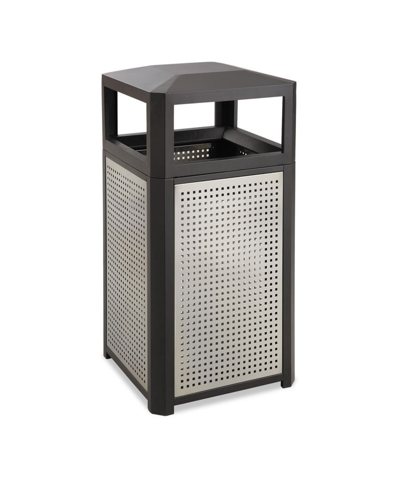 Safco Evos Outdoor/Indoor Steel Trash Can features four stylish perforated panels on a commercial-grade steel frame with galvanized base to resist rust and corrosion while keeping high traffic areas clean and litter free. The waste container includes a chip and peel-resistant rigid plastic liner for easy maintenance. Covered dome features four openings that let you discard waste without touching the lid, which may help reduce the spread of germs. Ideal for use on outdoor patios, meeting spaces, cafés, recreational and picnic areas, corporate and college campuses, boardwalks, tourist attractions, and other high traffic indoor and outdoor locations.