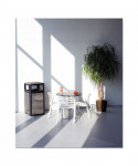 Attractive container helps manage waste and litter, indoors or out. Strong steel frame and decorative, galvanized steel panels are suitable in any first impression area. Four-sided opening makes it easy for pedestrians to drop their waste in passing. No assembly required and includes rigid plastic liner.