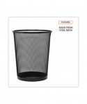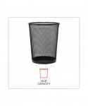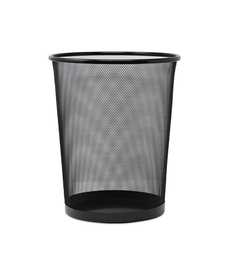 Durable and sturdy, black mesh wastebasket keeps workspaces neat and tidy. Stylish design of mesh looks great while keeping trash in its place. Use with or without a can liner. Solid rim makes it easy to carry and unload. Breathable mesh design prevents odors from getting trapped. Great for under the desk and inside work areas. Powder coated.