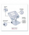 The OTM Essentials adjustable riser laptop stand helps raise your laptop to an ideal working position. Aluminum for a sleek look that is both portable and lightweight.