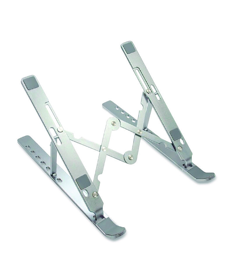 The OTM Essentials adjustable riser laptop stand helps raise your laptop to a perfect working position. Compatible with laptops, tablets, phones, and other devices.