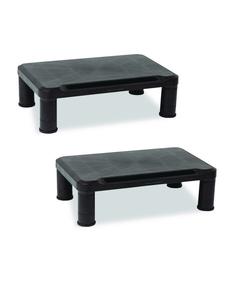 Discover the convenience and improved posture offered by Mind Reader Adjustable Monitor Stands. Adjustable in height, they're idea for alleviating eye, neck and back strain. They can also elevate laptops, printers, gaming consoles and more. Stable with protective, non-slip rubber feet, these sturdy stands keep your devices safe and secure. Ideal for commercial offices, home offices and dorm rooms, they not only promote better posture and overall well-being; but as you can stow office supplies below, they can also help you decrease clutter on your worksurface.