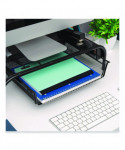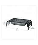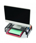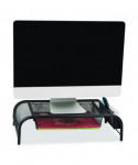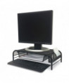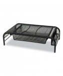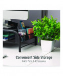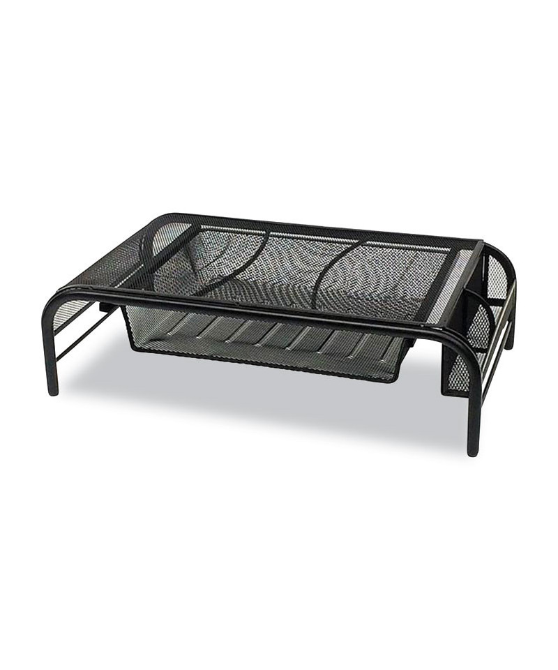 Restore order to a cluttered workspace. The elevated design puts your screen at a more comfortable viewing area, while the two side compartments keep pens and pencils close at hand. A pullout drawer offers space for additional office supplies, keeping them off of your desktop.