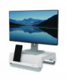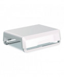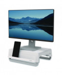 Alleviate eye, neck and shoulder strain by elevating your monitor to a more comfortable level. Innovative stacking column design provides three adjustable height levels, and the stacking columns also clip flat under the platform to deliver easy portability. High-impact plastic construction and protective, non-skid rubber feet.