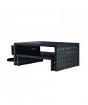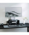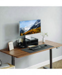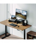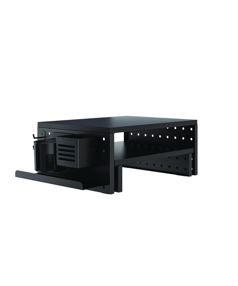 Two versatile risers with pegboards. Ergonomic design elevates the screen to eye level for better viewing. Desk organizer adds more space for additional desk storage. Two large MDF platforms 16.7" x 12" each hold your computer or laptop. Handy accessories include tray, pen cup, beverage holder and headphone holders. Weight capacity of 44 lbs for each riser.