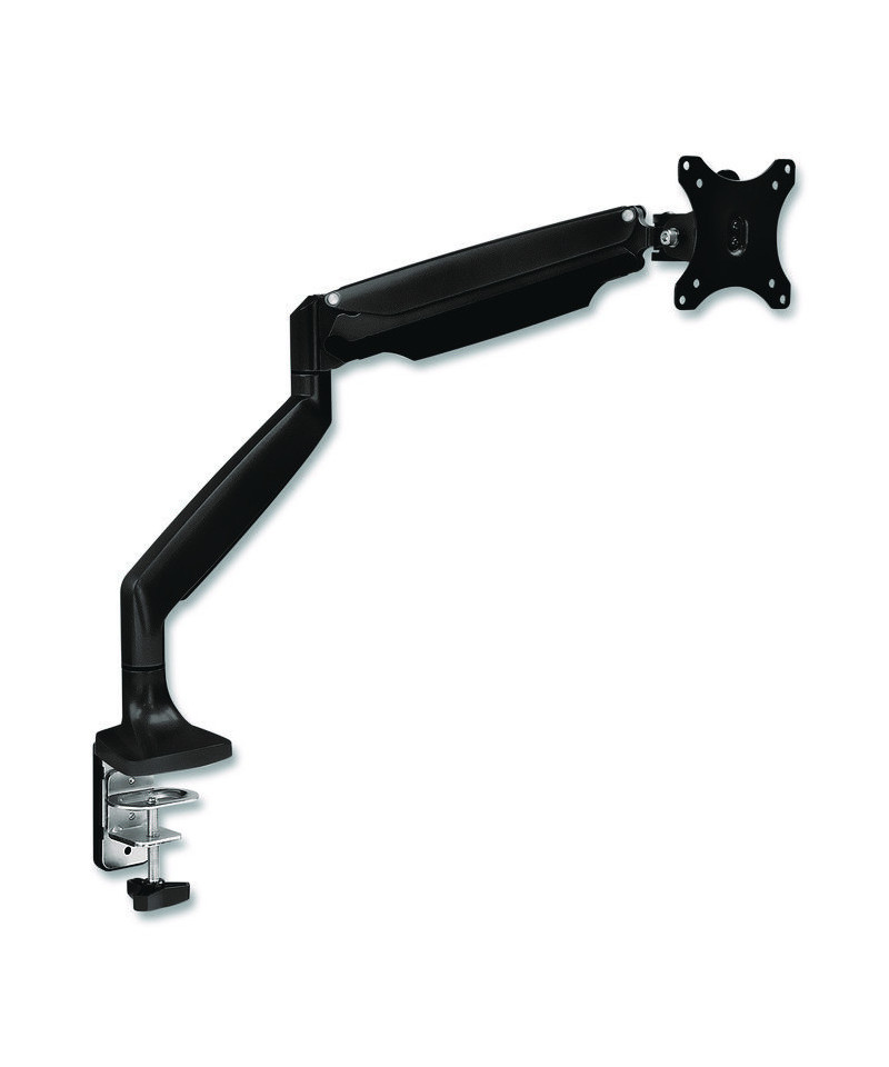 Turn your workspace into a comfortable, ergonomic environment with the MOUNT-IT! Single Monitor Gas-Spring Mounting Arm. Fully adjustable arm allows you to control the height, angle and orientation of your monitor, making it easy to keep it at eye-level, no matter how you configure your workstation. As the arm features a very broad height-adjustability range, most sit-stand applications are supported, too! Viewing height and angle as well as horizontal-landscape and vertical-portrait orientations are also easily achieved with minimal manipulation. For extra convenience, cable-management clips along the heavy-duty arm help you keep your workstation looking neat and tidy. Arm's durable base supports grommet and C-clamp installation. Grommet configuration accommodates worksurfaces up to 3.15". C-clamp configuration accommodates worksurfaces up to 3.35" thick.