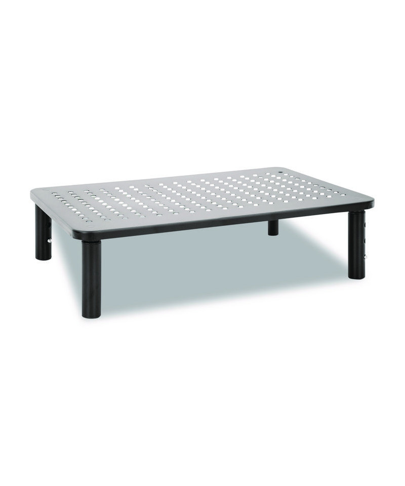 Create a more ergonomic workspace with the MOUNT-IT! Adjustable Desktop Monitor Riser. This slim and lightweight yet sturdy and durable metal stand elevates your monitor or laptop for more comfortable use and viewing. Three adjustable height settings make it easy to find your optimal view angle. Open-format base allows you to store papers, files and office essentials below to help you create a clutter-free desk space. All four legs feature protective silicone pads to keep your worksurface scratch-free.