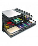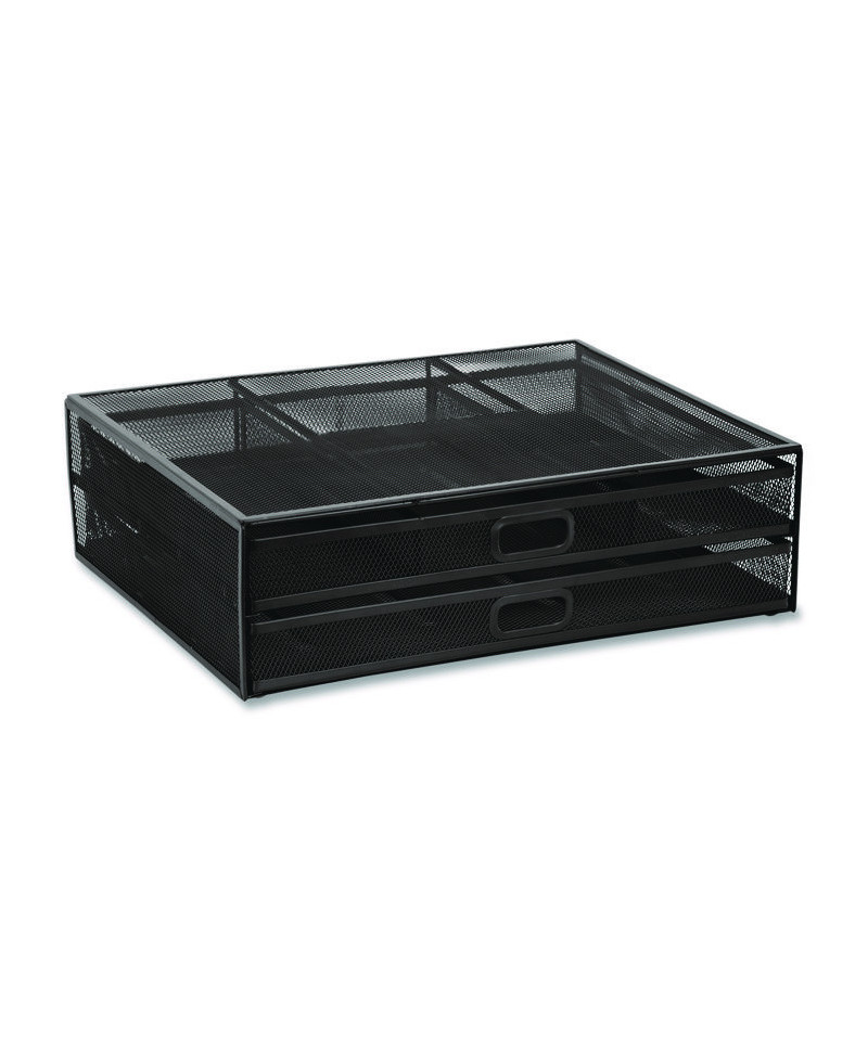 Boost your monitor and stow away the office essentials when you choose the MOUNT-IT! Metal Mesh Monitor Stand with Storage Drawers. Reap instant benefits from the improved ergonomics and the convenient, space-saving storage compartments. Sleek, lightweight, sturdy metal design supports up to 32" monitors, and its ventilated mesh weave helps keep your devices running cool. Pull-out drawers feature a compartmentalized system that's reminiscent of a traditional desk's pencil drawer tray.