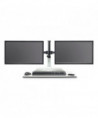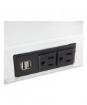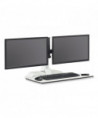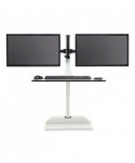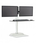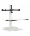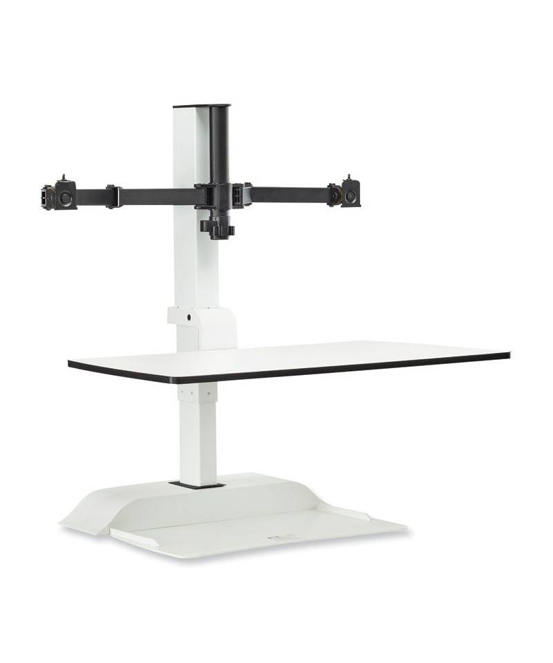 Versatile remote control surface that rises to allow user to adjust to sit or stand while working and includes two monitor arms. Electric height adjustment range of 17.5 to suit a variety of users and to allow users to move easily between sitting and standing to help promote a more active workday. Remote control with simple up/down buttons with the option to program three presets to easily transition between sitting or standing. Two USB charging ports and two outlets for easy connectivity and charging capabilities. Workstation holds up to 10 lbs, dual monitor arms hold up to nine lbs. each to handle the weight of most computers. Base is constructed of sturdy steel with a powder coat finish and the top is constructed of laminate for long-lasting durability. Each of the two mounts holds one monitor up to 27 in size (maximum nine lbs each). Design color suits most décor. Additional magnetic remote controls are sold separately.